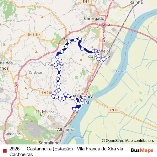 Bus 2926 - Castanheira (Estação) - Vila Franca de Xira via Cachoeiras: Full Schedule in Vila Franca de Xira