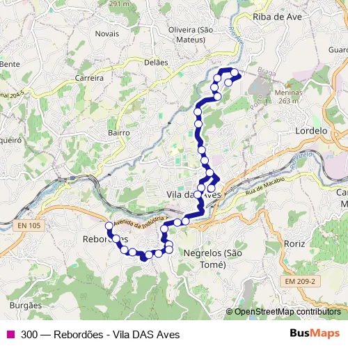 Click here to view the nearest 300 - Rebordões - Vila DAS Aves bus stop.