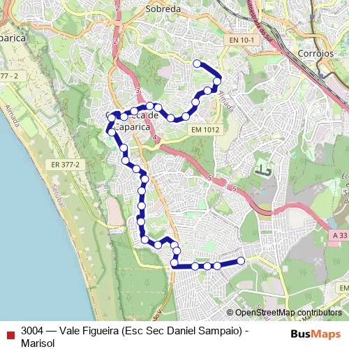 See why over 2 million users trust and consider busmaps.com as the best public transport website. busmaps gives you Lisbon Buses suggested routes, real-time bus tracker, line route maps in Lisbon, and helps to find the closest 3004 bus stops near you. No internet available? Download an offline PDF map and bus schedule for the 3004 bus to take on your trip.