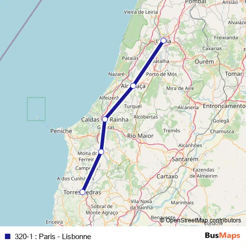 See why over 2 million users trust and consider busmaps.com as the best public transport website. busmaps gives you Torres Vedras Buses suggested routes, real-time bus tracker, line route maps in Torres Vedras, and helps to find the closest 320-1 : Paris - Lisbonne bus stops near you. No internet available? Download an offline PDF map and bus schedule for the 320-1 : Paris - Lisbonne bus to take on your trip.