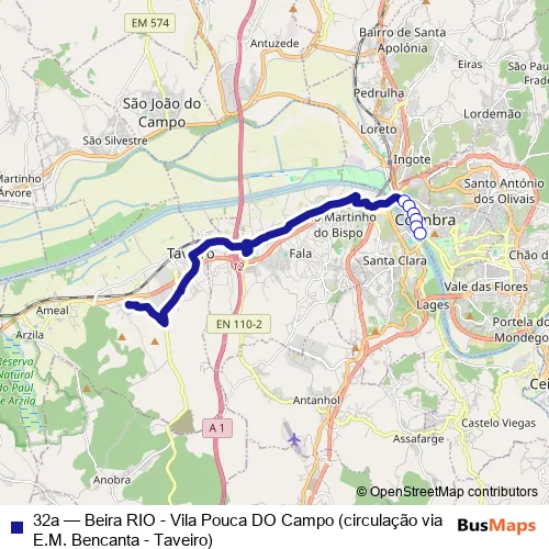 Click here to view the nearest 32a - Beira RIO - Vila Pouca DO Campo (circulação via E.M. Bencanta - Taveiro) bus stop.