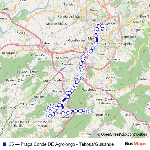Bus 35 - Praça Conde DE Agrolongo - Tebosa/Guisande: Full Schedule in Braga