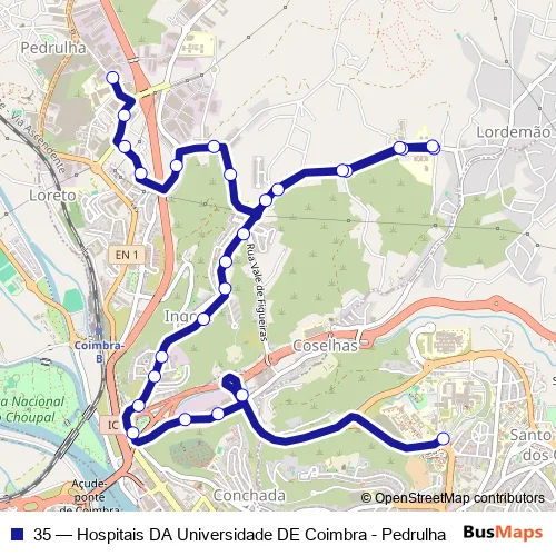 See why over 2 million users trust and consider busmaps.com as the best public transport website. busmaps gives you Coimbra Buses suggested routes, real-time bus tracker, line route maps in Coimbra, and helps to find the closest 35 bus stops near you. No internet available? Download an offline PDF map and bus schedule for the 35 bus to take on your trip.