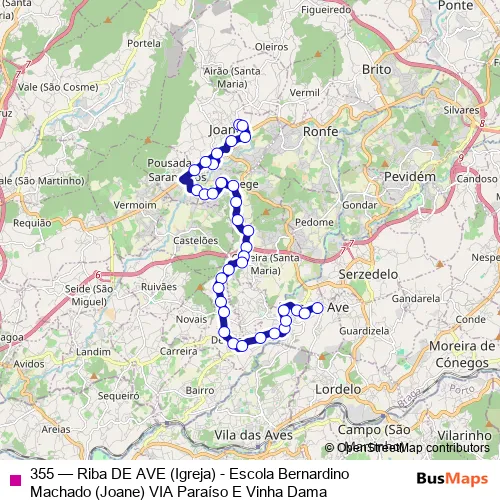 Click here to view the nearest 355 - Riba DE AVE (Igreja) - Escola Bernardino Machado (Joane) VIA Paraíso E Vinha Dama bus stop.