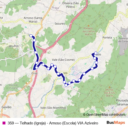 Click here to view the nearest 359 - Telhado (Igreja) - Arnoso (Escola) VIA Aziveiro bus stop.