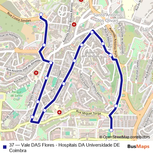See why over 2 million users trust and consider busmaps.com as the best public transport website. busmaps gives you Coimbra Buses suggested routes, real-time bus tracker, line route maps in Coimbra, and helps to find the closest 37 bus stops near you. No internet available? Download an offline PDF map and bus schedule for the 37 bus to take on your trip.