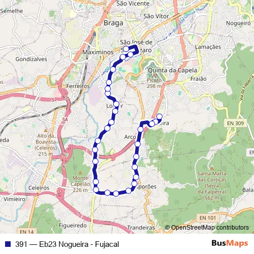 Bus 391 - Eb23 Nogueira - Fujacal: Full Schedule in Braga