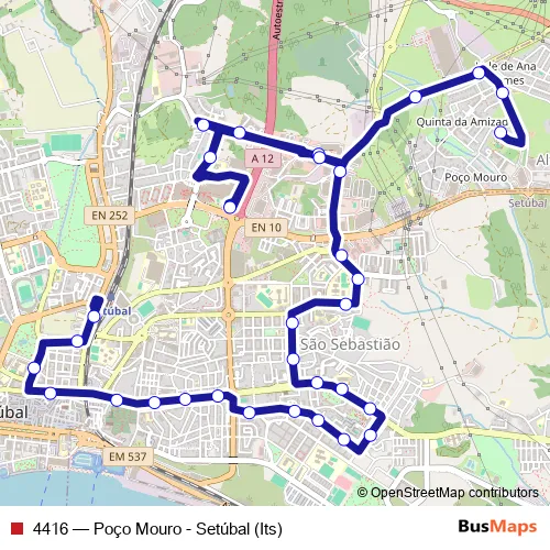 See why over 2 million users trust and consider busmaps.com as the best public transport website. busmaps gives you Setubal Buses suggested routes, real-time bus tracker, line route maps in Setubal, and helps to find the closest 4416 bus stops near you. No internet available? Download an offline PDF map and bus schedule for the 4416 bus to take on your trip.