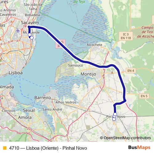 Click here to view the nearest 4710 - Lisboa (Oriente) - Pinhal Novo bus stop.