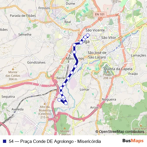 See why over 2 million users trust and consider busmaps.com as the best public transport website. busmaps gives you Braga Buses suggested routes, real-time bus tracker, line route maps in Braga, and helps to find the closest 54 bus stops near you. No internet available? Download an offline PDF map and bus schedule for the 54 bus to take on your trip.