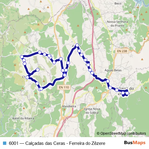 Click here to view the nearest 6001 - Calçadas das Ceras - Ferreira do Zêzere bus stop.