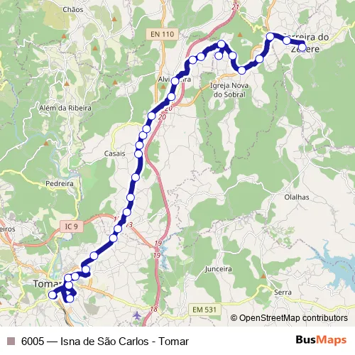 Click here to view the nearest 6005 - Isna de São Carlos - Tomar bus stop.