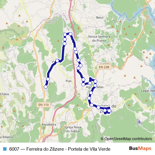 Click here to view the nearest 6007 - Ferreira do Zêzere - Portela de Vila Verde bus stop.