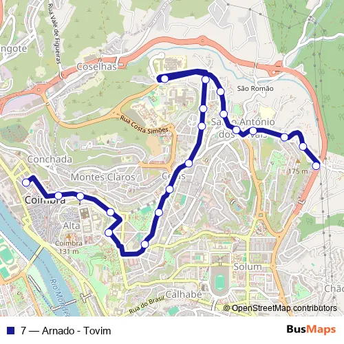 See why over 2 million users trust and consider busmaps.com as the best public transport website. busmaps gives you Coimbra Buses suggested routes, real-time bus tracker, line route maps in Coimbra, and helps to find the closest 7 bus stops near you. No internet available? Download an offline PDF map and bus schedule for the 7 bus to take on your trip.