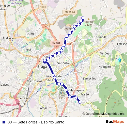 Bus 80 - Sete Fontes - Espírito Santo in Braga: Stops & Timetable