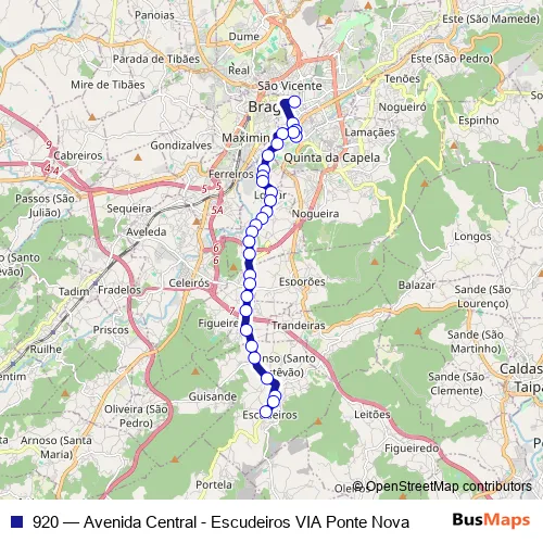 Bus 920 - Avenida Central - Escudeiros VIA Ponte Nova: Full Schedule in Braga