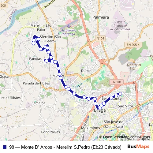 Bus 98 - Monte D' Arcos - Merelim S.Pedro (Eb23 Cávado) Schedule in Braga