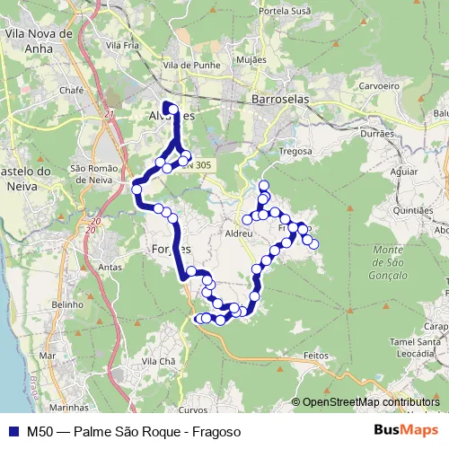 Bus M50 - Palme São Roque - Fragoso in Viana do Castelo: Stops & Timetable