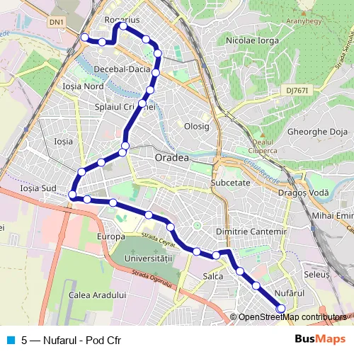 See why over 2 million users trust and consider busmaps.com as the best public transport website. busmaps gives you Oradea Trams suggested routes, real-time bus tracker, line route maps in Oradea, and helps to find the closest 5 tram stops near you. No internet available? Download an offline PDF map and bus schedule for the 5 tram to take on your trip.