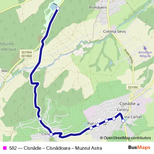 The first stop of the 582 bus route is Muzeul Astra and the last stop is
