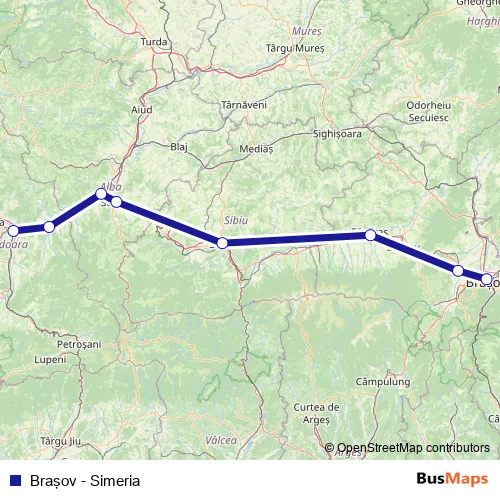 The first stop of the Braşov - Simeria rail route is Braşov and the last stop is Simeria. Braşov - Simeria (Braşov - Simeria) is operational during zilnic.