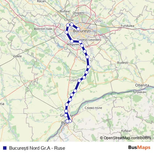 Bucureşti Nord Gr.A - Ruse rail Route Map