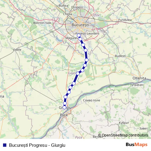 The first stop of the Bucureşti Progresu - Giurgiu rail route is Bucureşti Progresu and the last stop is Giurgiu. Bucureşti Progresu - Giurgiu (Bucureşti Progresu - Giurgiu) is operational during zilnic.