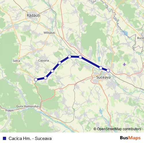 Additional information: Cacica Hm. - Suceava has 8 stops and the total trip duration for this route is approximately 55 minutes.