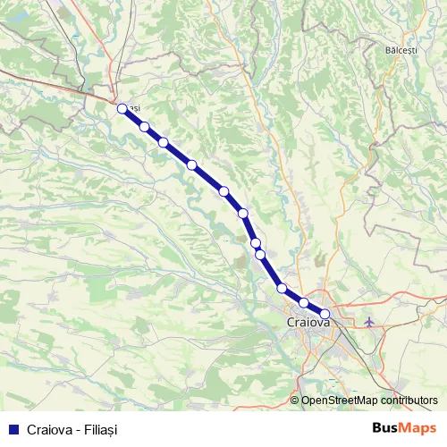 The first stop of the Craiova - Filiaşi rail route is Craiova and the last stop is Filiaşi. Craiova - Filiaşi (Craiova - Filiaşi) is operational during zilnic.