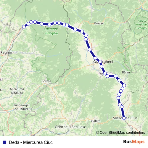 The first stop of the Deda - Miercurea Ciuc rail route is Deda and the last stop is Miercurea Ciuc. Deda - Miercurea Ciuc (Deda - Miercurea Ciuc) is operational during zilnic.