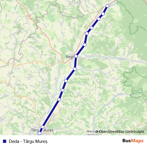 The first stop of the Deda - Târgu Mureş rail route is Deda and the last stop is Târgu Mureş. Deda - Târgu Mureş (Deda - Târgu Mureş) is operational during zilnic.