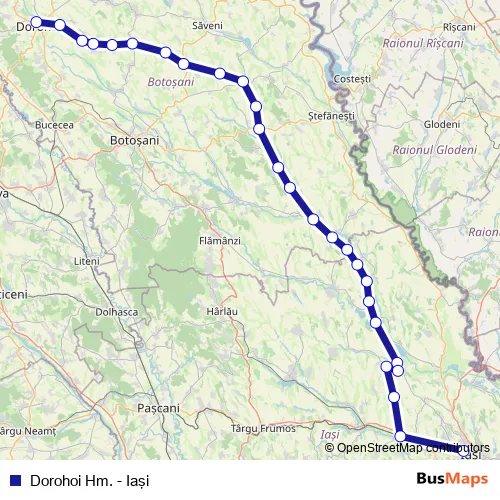 The first stop of the Dorohoi Hm. - Iaşi rail route is Dorohoi Hm. and the last stop is Iaşi. Dorohoi Hm. - Iaşi (Dorohoi Hm. - Iaşi) is operational during zilnic.