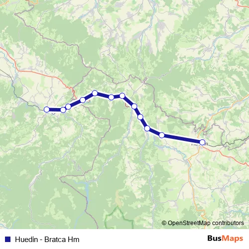 The first stop of the Huedin - Bratca Hm bus route is Huedin and the last stop is Bratca Hm.. Huedin - Bratca Hm (Huedin - Bratca Hm) is operational during în zilele lucrătoare.