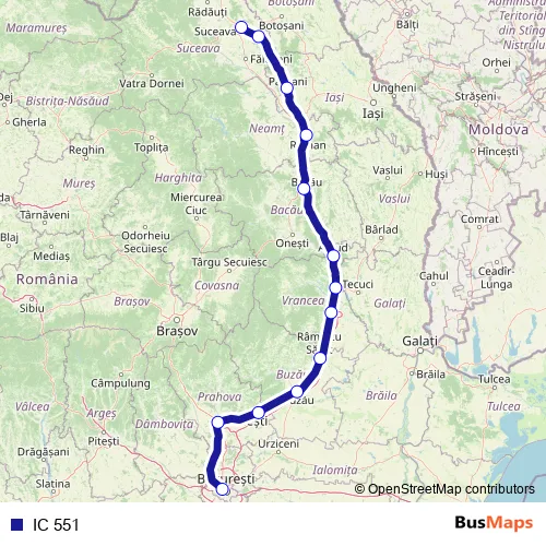 See why over 2 million users trust and consider busmaps.com as the best public transport website. busmaps gives you Buzau Rail Services suggested routes, real-time bus tracker, line route maps in Buzau, and helps to find the closest IC 551 rail stops near you. No internet available? Download an offline PDF map and bus schedule for the IC 551 rail to take on your trip.