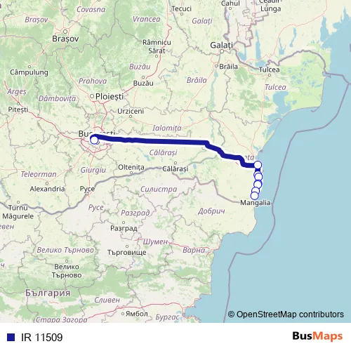 The first stop of the IR 11509 rail route is Bucureşti Nord Gr.A and the last stop is Mangalia. IR 11509 is operational during zilnic.