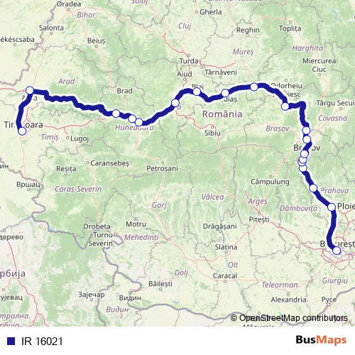 The first stop of the IR 16021 rail route is Bucureşti Nord Gr.A and the last stop is Timişoara Nord. IR 16021 is operational during zilnic.