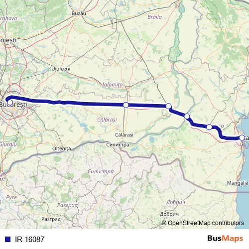 The first stop of the IR 16087 rail route is Bucureşti Nord Gr.A and the last stop is Constanţa. IR 16087 is operational during zilnic.