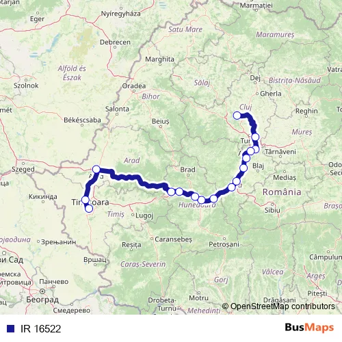 The first stop of the IR 16522 rail route is Cluj Napoca and the last stop is Timişoara Nord. IR 16522 is operational during zilnic.