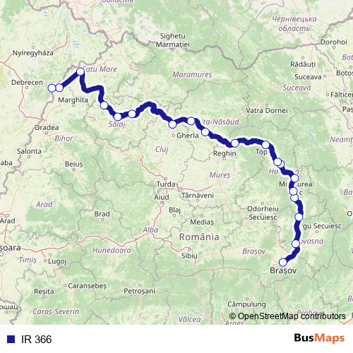 The first stop of the IR 366 rail route is Braşov and the last stop is Nyirabrany. IR 366 is operational during zilnic.