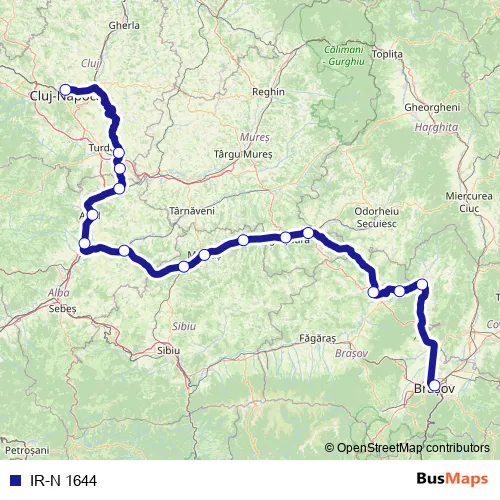 The first stop of the IR-N 1644 rail route is Cluj Napoca and the last stop is Braşov. IR-N 1644 is operational during zilnic.