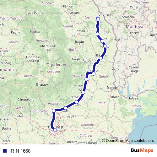 The first stop of the IR-N 1668 rail route is Iaşi and the last stop is Bucureşti Nord Gr.A. IR-N 1668 is operational during zilnic.