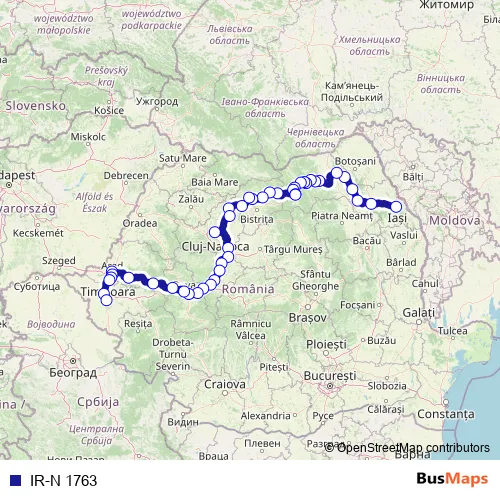 The first stop of the IR-N 1763 rail route is Iaşi and the last stop is Timişoara Nord. IR-N 1763 is operational during zilnic.