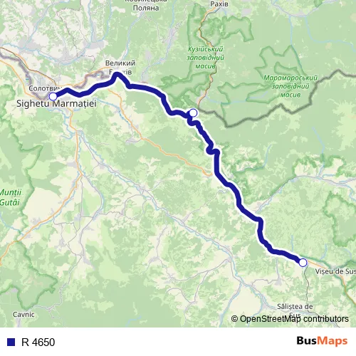 The first stop of the R 4650 rail route is Sighetu Marmaţiei and the last stop is Vişeu de Jos. R 4650 is operational during în weekend.