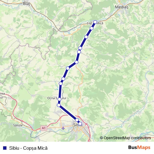 The first stop of the Sibiu - Copşa Mică rail route is Sibiu and the last stop is Copşa Mică. Sibiu - Copşa Mică (Sibiu - Copşa Mică) is operational during zilnic.