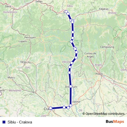 The first stop of the Sibiu - Craiova rail route is Sibiu and the last stop is Craiova. Sibiu - Craiova (Sibiu - Craiova) is operational during zilnic.