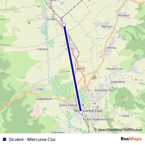The first stop of the Siculeni - Miercurea Ciuc rail route is Siculeni and the last stop is Miercurea Ciuc. Siculeni - Miercurea Ciuc (Siculeni - Miercurea Ciuc) is operational during zilnic.