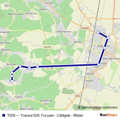Click here to view the nearest T028 - Traseul 028: Focşani - Cârligele - Blidari bus stop.