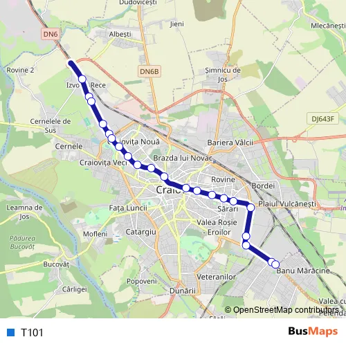 See why over 2 million users trust and consider busmaps.com as the best public transport website. busmaps gives you Craiova Trams suggested routes, real-time bus tracker, line route maps in Craiova, and helps to find the closest T101 tram stops near you. No internet available? Download an offline PDF map and bus schedule for the T101 tram to take on your trip.