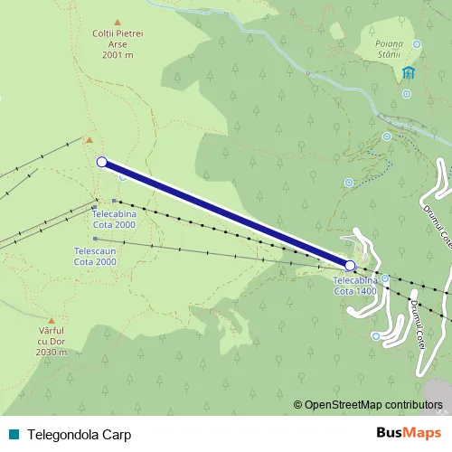 The first stop of the Telegondola Carp cable-car route is Telegondola Carp Cota 1400 and the last stop is Telegondola Carp Cota 2000. Telegondola Carp (Telegondola Carp) is operational during zilnic.