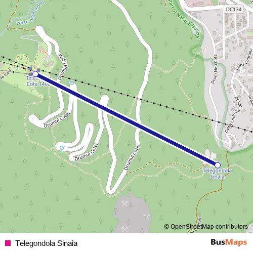 The first stop of the Telegondola Sinaia cable-car route is Telegondola Sinaia Cota 1000 and the last stop is Telegondola Sinaia Cota 1400. Telegondola Sinaia (Telegondola Sinaia) is operational during zilnic.